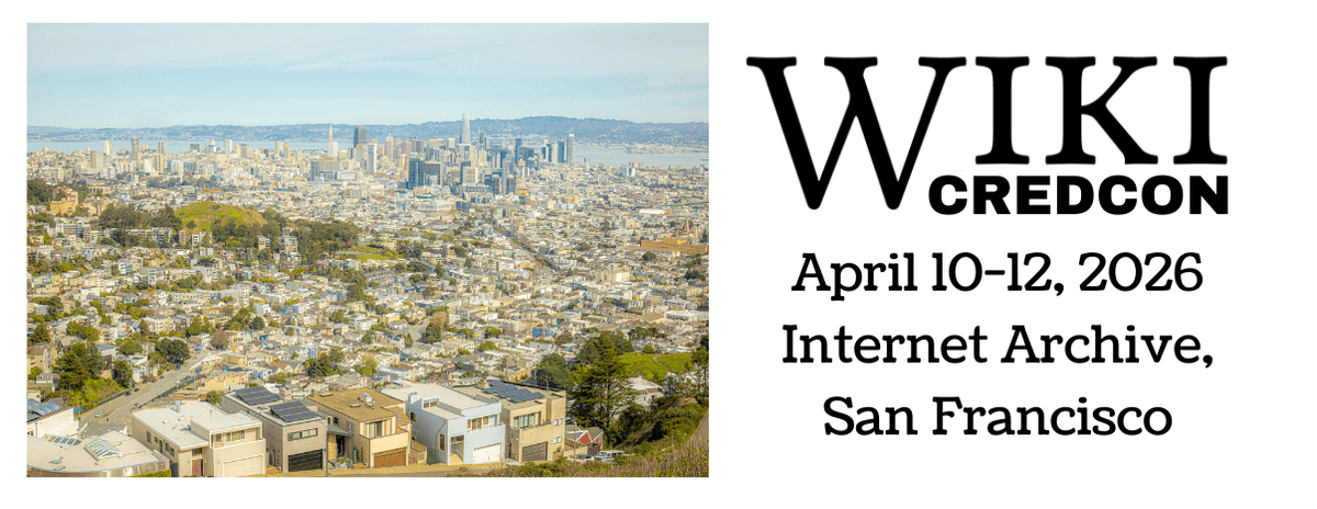 (Updated January 12, 2026) WikiCredCon will be held once again this year, from Friday, April 10 to Sunday April 12 in San Francisco, once again hosted by the Internet Archive and supported by the Wikimedia Foundation.